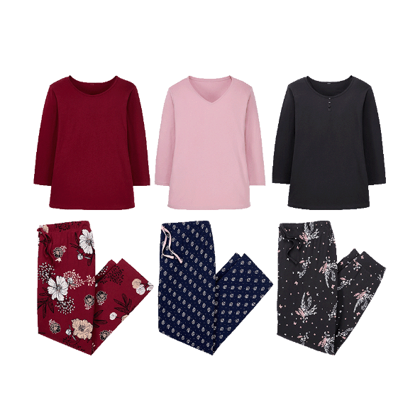 100% algodón. Cintura elástica con cordón. Cuello redondo o de pico. 52-60. Disponible en diferentes colores: Burgundy, Antracita, Rosa/Azul. Cintura elástica con cordón. Cuello redondo o de pico.