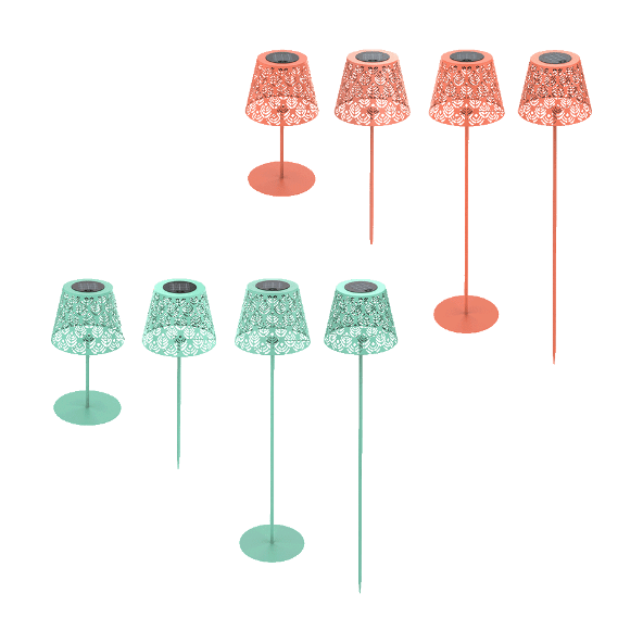 Carga mediante energía solar. Altura regulable (máx. 80 cm). Con base y pica de tierra. Protección IP44. Apta para exteriores. Varios colores disponibles: Beige, Negro, Verde, Naranja. 2 lm.